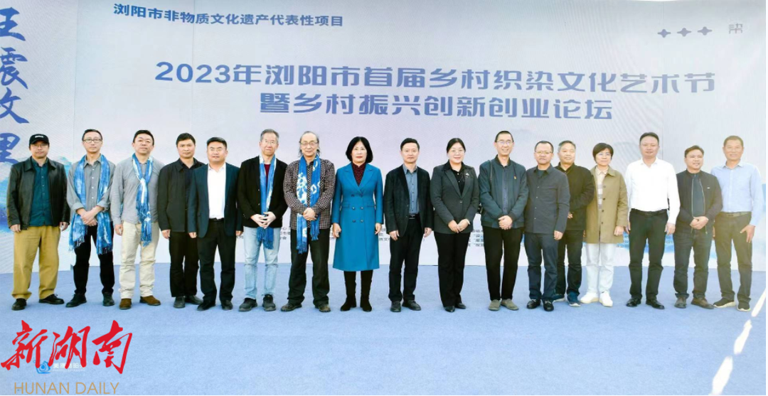 11月19日,在浏阳市北盛镇卓然村,由浏阳市北盛镇、湖南女子学院美术与设计学院、浏阳市文化馆联合主办的“2023年浏阳市首届乡村织染文化艺术节——暨乡村振兴创新创业论坛”开幕启动仪式活动圆满举行。