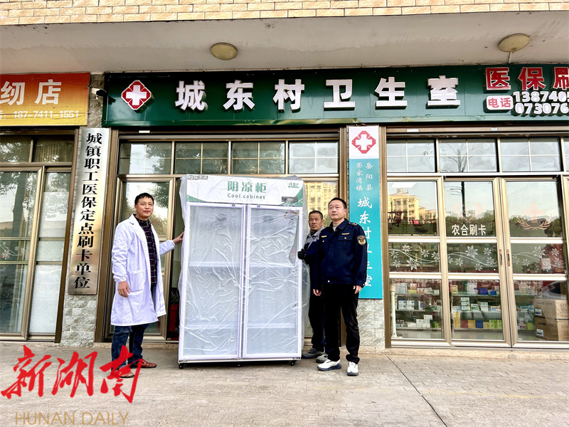 如今,在城南卫生室里,一台崭新的三门阴凉柜格外醒目,里面陈列的药品整齐有序。卫生室的医师隋移红告诉记者,这是近期岳阳县为村级卫生室免费配备的阴凉柜,大大改善了基层卫生室的药品存储条件。