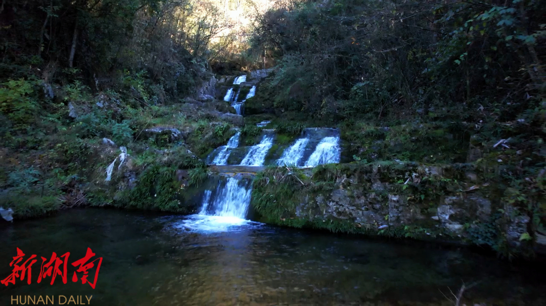 阳光透过树林间隙洒下,一颗颗饱满喜人的红豆杉果实点缀在绿叶间,一排排高大挺拔的水杉树直耸云天,一朵朵洁白的茶树花向阳盛开,一个个天然瀑布如白缎般流淌在万绿丛中,汇织成一幅五彩缤纷的天然生态油画。