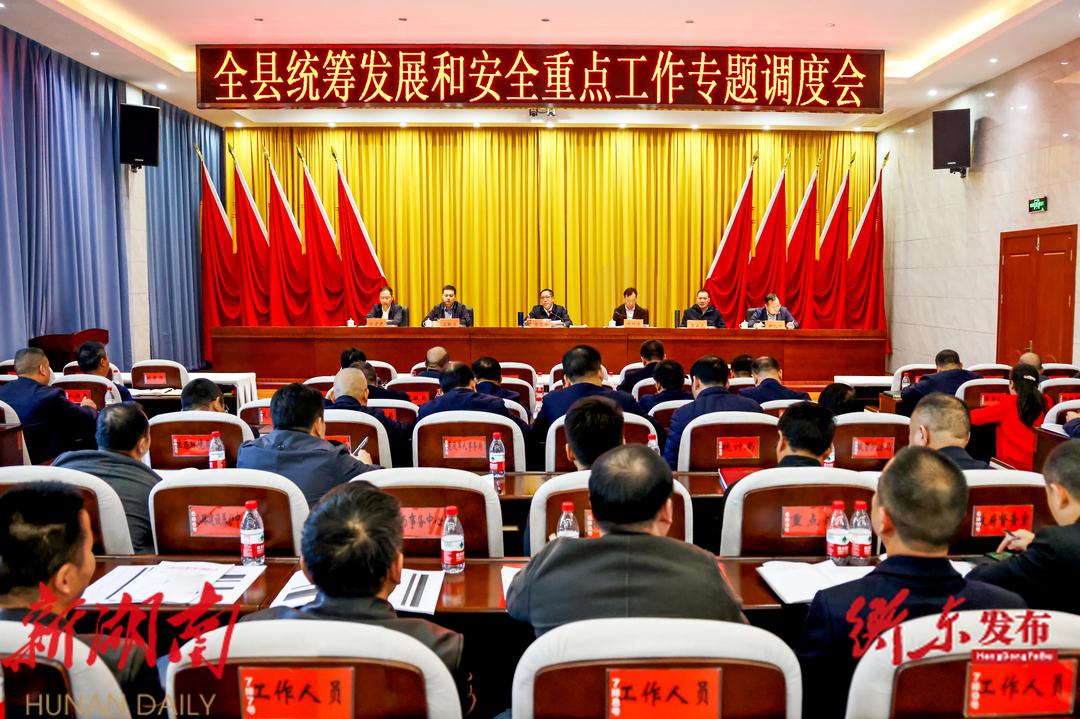 衡东融媒11月20日讯(融媒体记者 边冬宇 杨波 刘文杰(实习))11月20日,在收听收看全市统筹发展和安全重点工作专题调度视频会后,我县紧接着召开全县统筹发展和安全重点工作专题调度会,县委副书记、县长蒋崇华出席会议并讲话。
