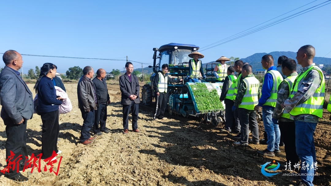 靖州融媒11月20日讯 (记者 钟屿右)11月20日,靖州苗族侗族自治县农机事务中心联合靖城农业发展有限公司,在渠阳镇戈村开展油菜机械化移栽现场演示培训,县内各农业合作社成员、种植大户、农机人员等70余人参加培训。