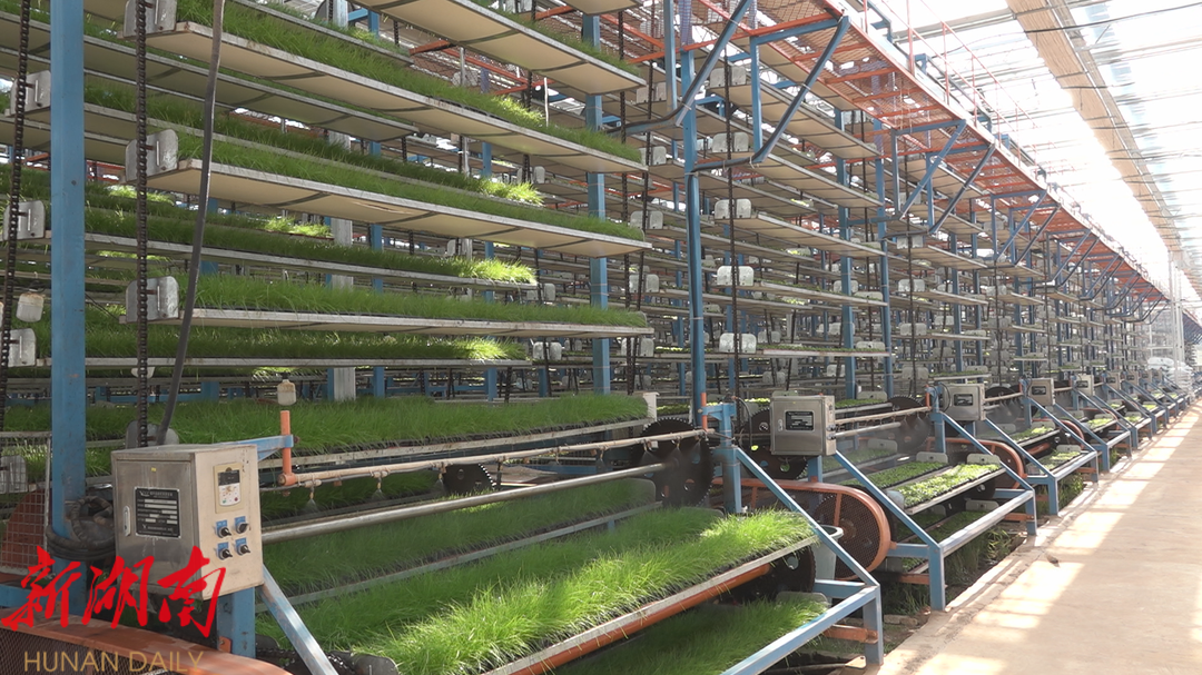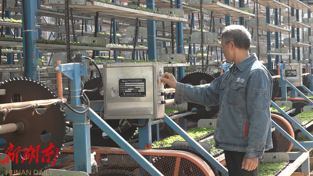 走进该村 旭民农机 合作社的 自动化育秧工厂 ,宽敞明亮的智慧玻璃大棚里, 花卉苗、 油菜 苗长势喜人。育 苗 流水线上 ,分装 好的 育 苗 盘 摆放在 循环运动式育苗设备 上, 一排排苗床整齐排列,工作人员点击操作面板,育苗盘通过自动滑轨上下循环,经过一排喷淋设备后完成灌溉。滚动式的钢架苗床及各类智能化的管护设备,不仅节省了人力,也大大提 升 了育苗品质和水平。