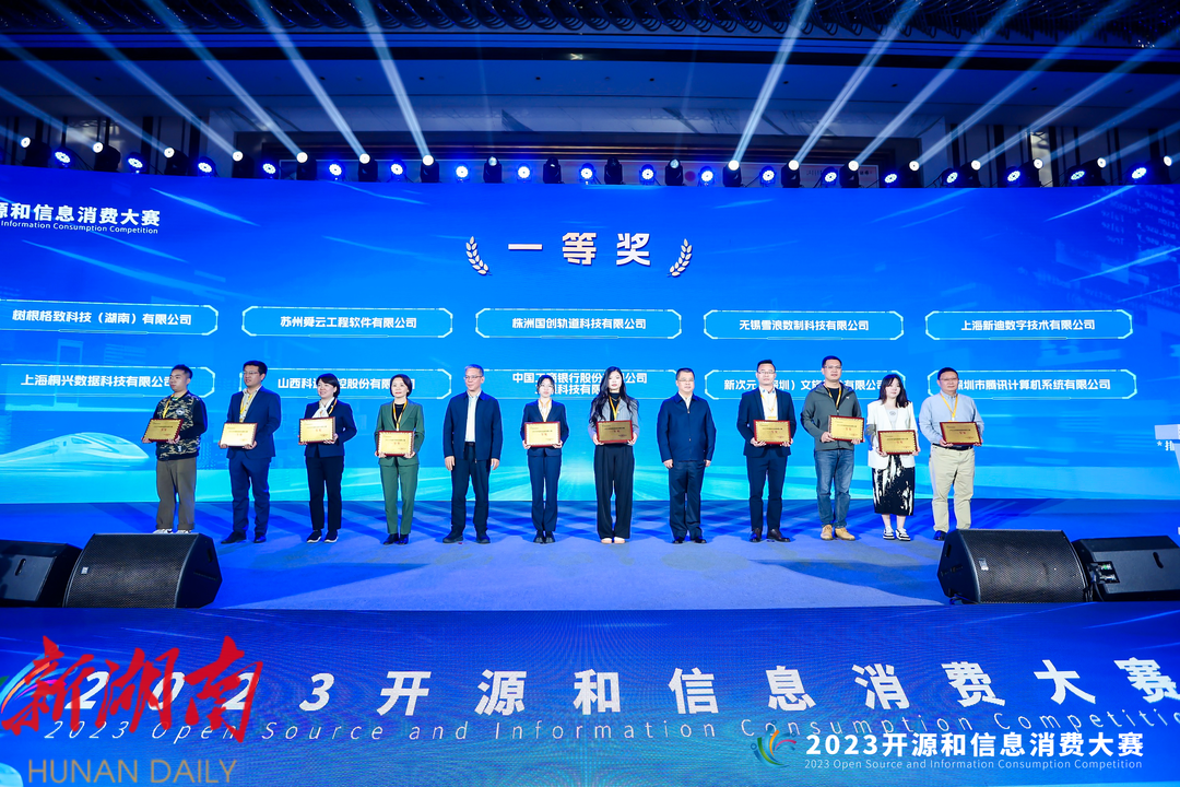 湖南日报·新湖南客户端11月22日讯(长沙经开区工作站记者 胡欢欢)11月21日,2023开源和信息消费大赛总决赛颁奖典礼暨“智生产 慧生活 i消费”产业峰会在株洲举行。活动现场发布了2023开源和信息消费大赛“百佳项目集”,来自长沙经开区星沙区块链产业园的树根格致科技(湖南)有限公司(以下简称“树根格致”)“基于区块链的产品全周期质量溯源管理系统(QTS)”项目成功斩获大赛一等奖。
