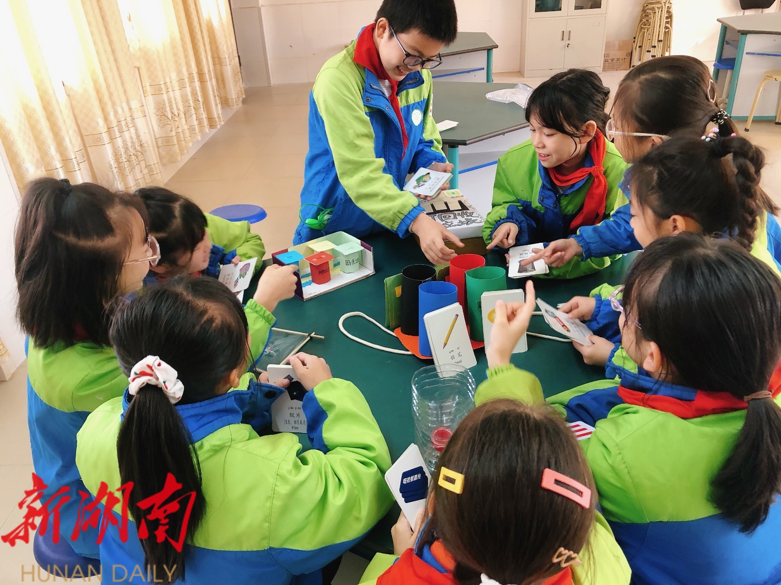 “快来玩,快来玩呀”......同学们在课间玩起了垃圾分类小游戏,有“垃圾分类桌游”“垃圾分类沥水器”“垃圾分类大转盘”......这些创意的小发明都是同学们自己制作的,大家在“玩游戏”的过程中,进一步了解了垃圾分类知识,这样的课间小游戏把枯燥的知识讲解变成了身体力行的趣味活动,让更多同学成为垃圾分类的引导者、宣传者、践行者。