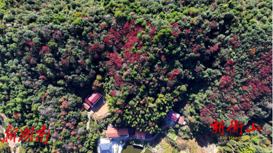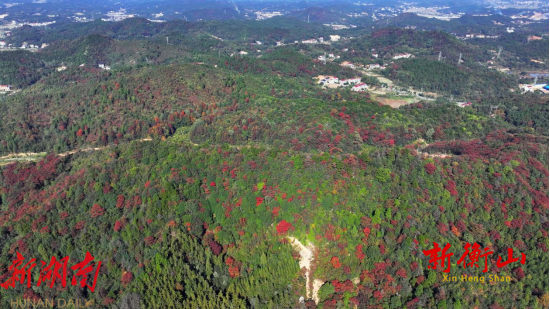 衡山县融媒体中心11月22日讯【记者: 廖晶 戴玮】初冬时节,衡山县开云镇幸福村冬韵美景醉人,山林间色彩斑斓,景色如画。成片的野生枫树渐渐变红,在航拍无人机镜头里呈现出一幅美丽的乡村画卷。