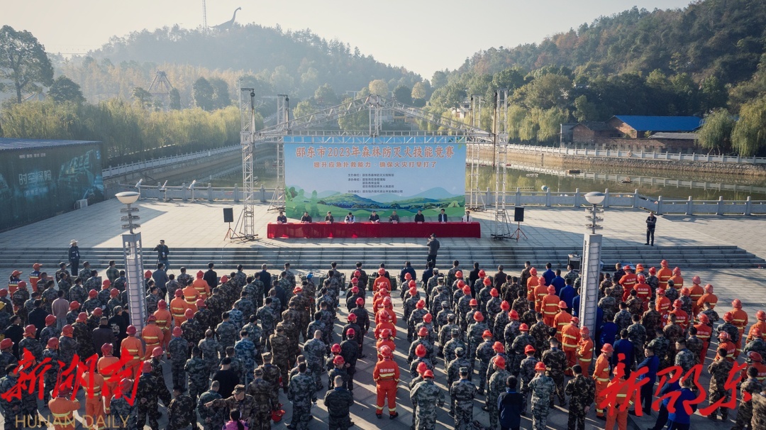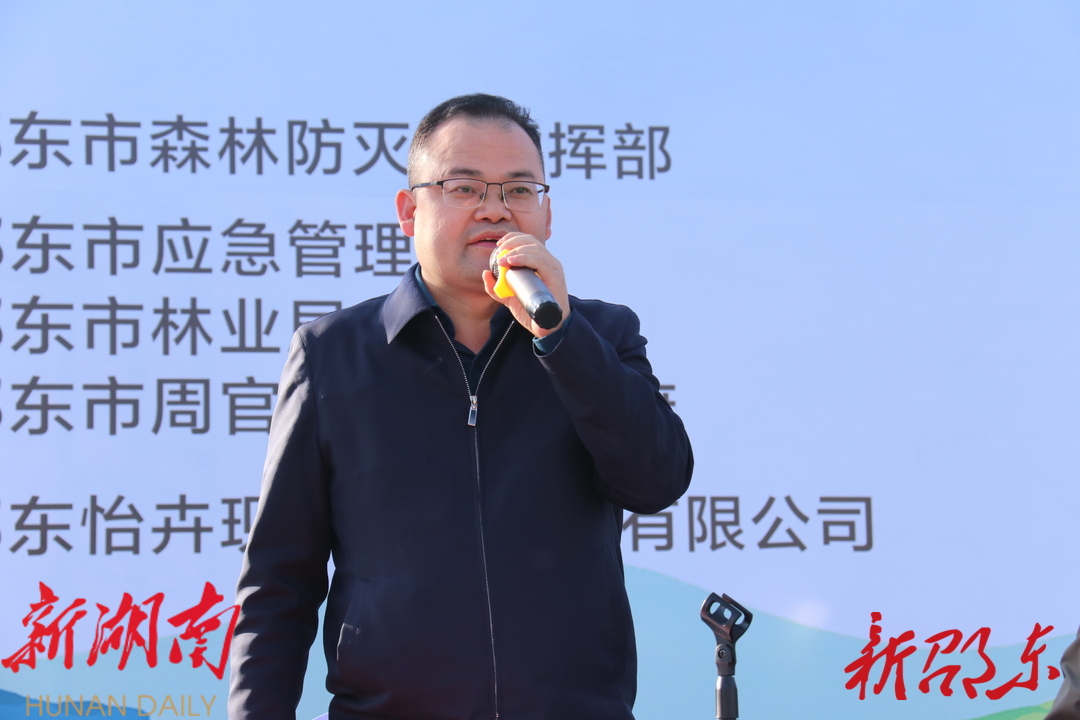 新邵东客户端11月22日讯(记者 刘意忠 通讯员 彭向文) 11月21日,邵东市在怡卉园景区举行2023年森林防灭火技能竞赛,全市26个乡镇(场)、街道代表队参加角逐。邵东市委常委、常务副市长陈业华宣布竞赛开始。