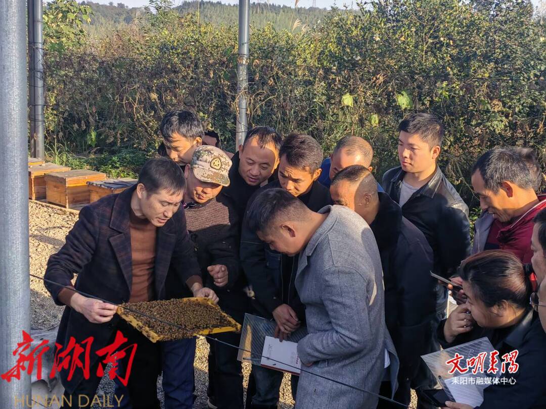 “王支书,你这儿的蜂蜜真甜啊”“油茶树要怎么养才长得好”……近日,冬日的暖阳高照,长坪乡潭湖村焱燚生态农业基地里人头攒动、热闹非凡,油茶林里现场教学、蜂蜜场里你问我答……一场别开生面的“田间课堂”活动正在进行。