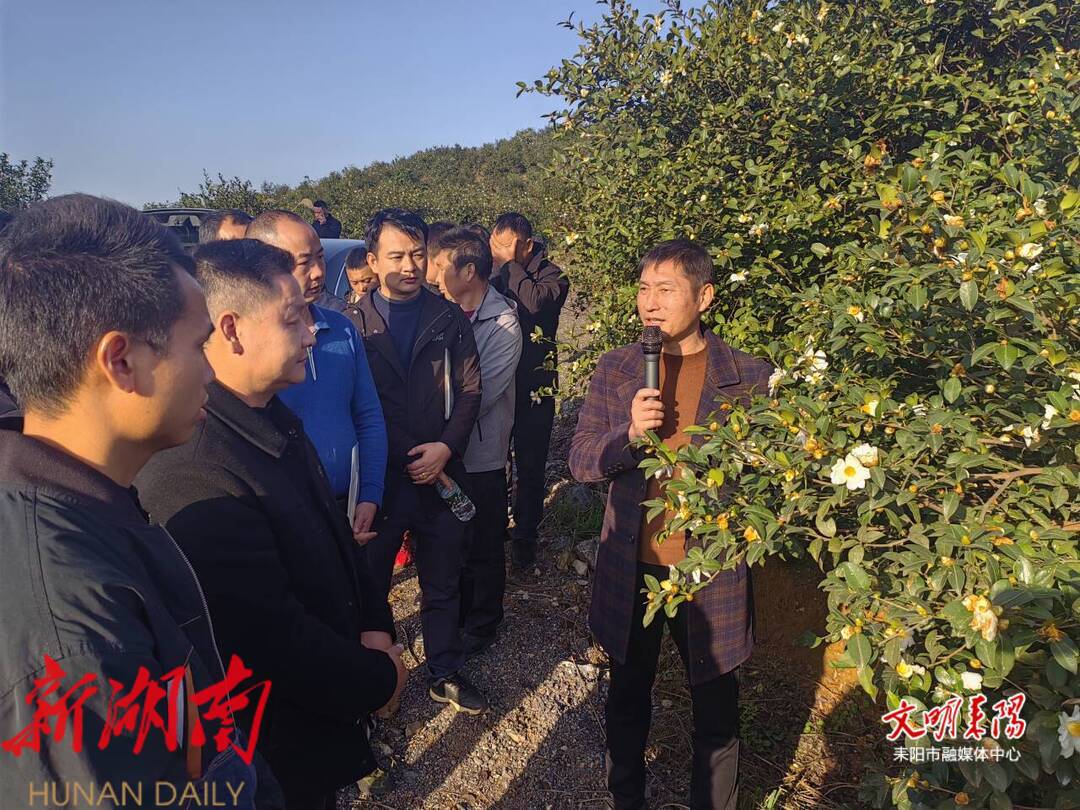 王仁子从2008年开始种植油茶,经过多年的探索和实践,成功打造了一个占地8600亩的油茶种植基地,还引进了蜜蜂扩繁养殖技术,实现了油茶与蜜蜂的互利共生。随后的考察中,大家就耕地抛荒治理、农村人居环境整治、农业产业发展等方面的知识和经验开展了交流。