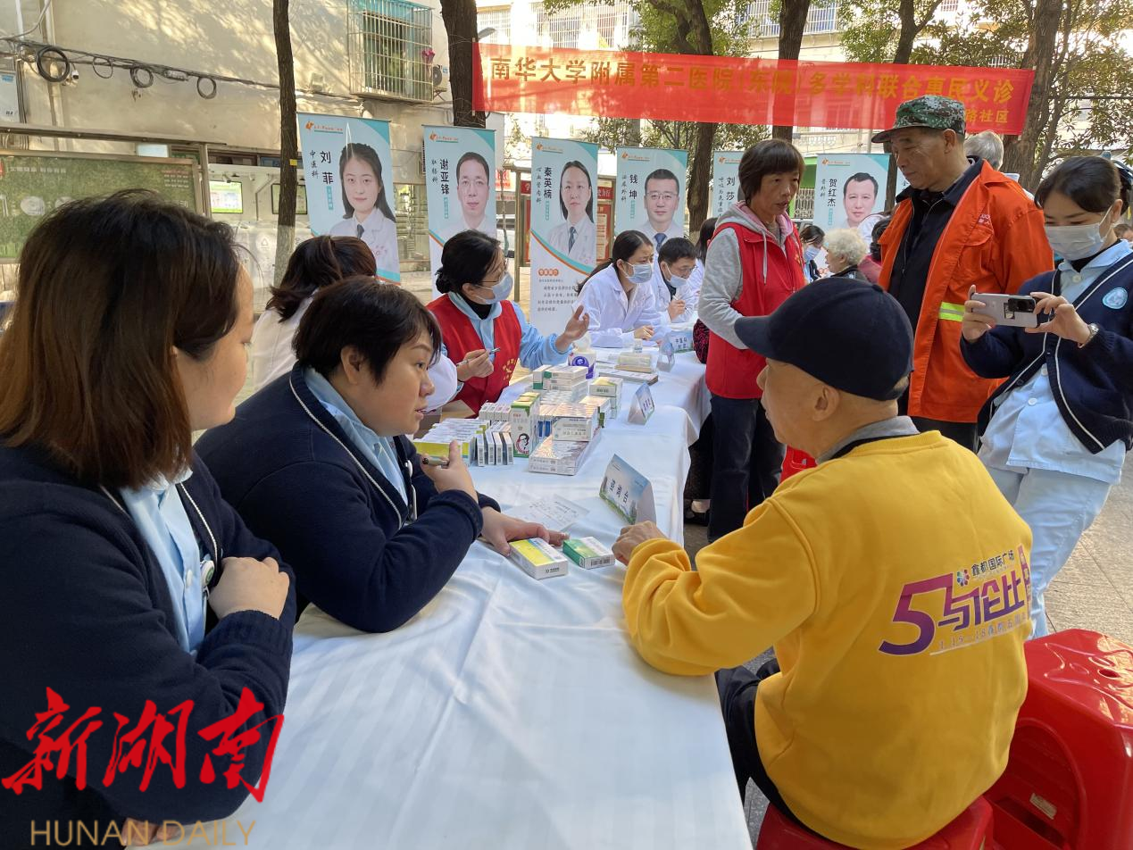 活动现场,来义诊的群众络绎不绝。南华大学附属第二医院的专家团队为辖区群众提供一对一、面对面的医疗服务,并给来访群众提出各种医疗、生活指导,对于需要进一步检查的,帮助他们提前进行预约。社区志愿者与医护人员的热情服务得到居民的高度认可和赞同。