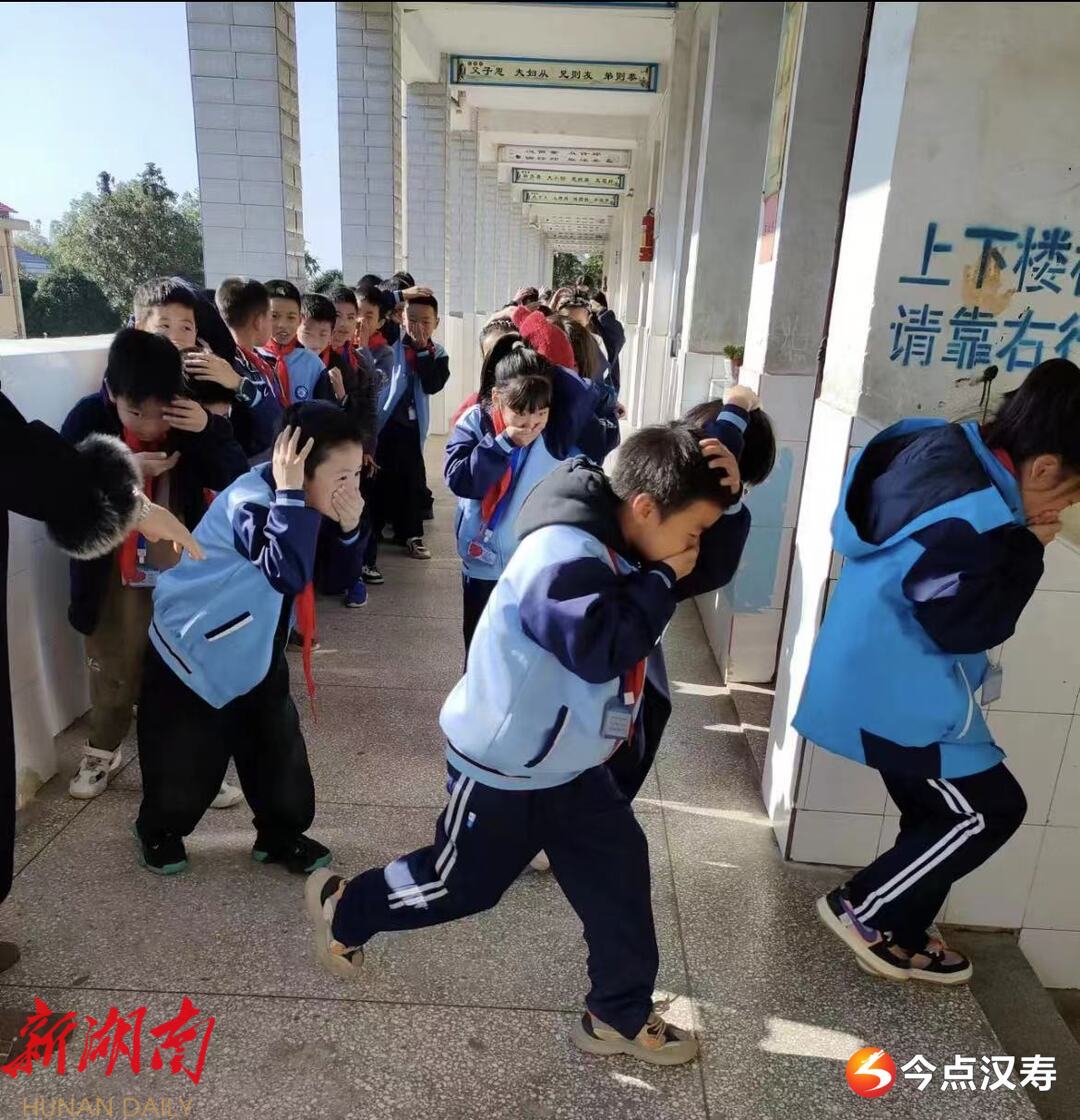 近日,汉寿县军山铺镇小学开展防震减灾应急疏散演练。