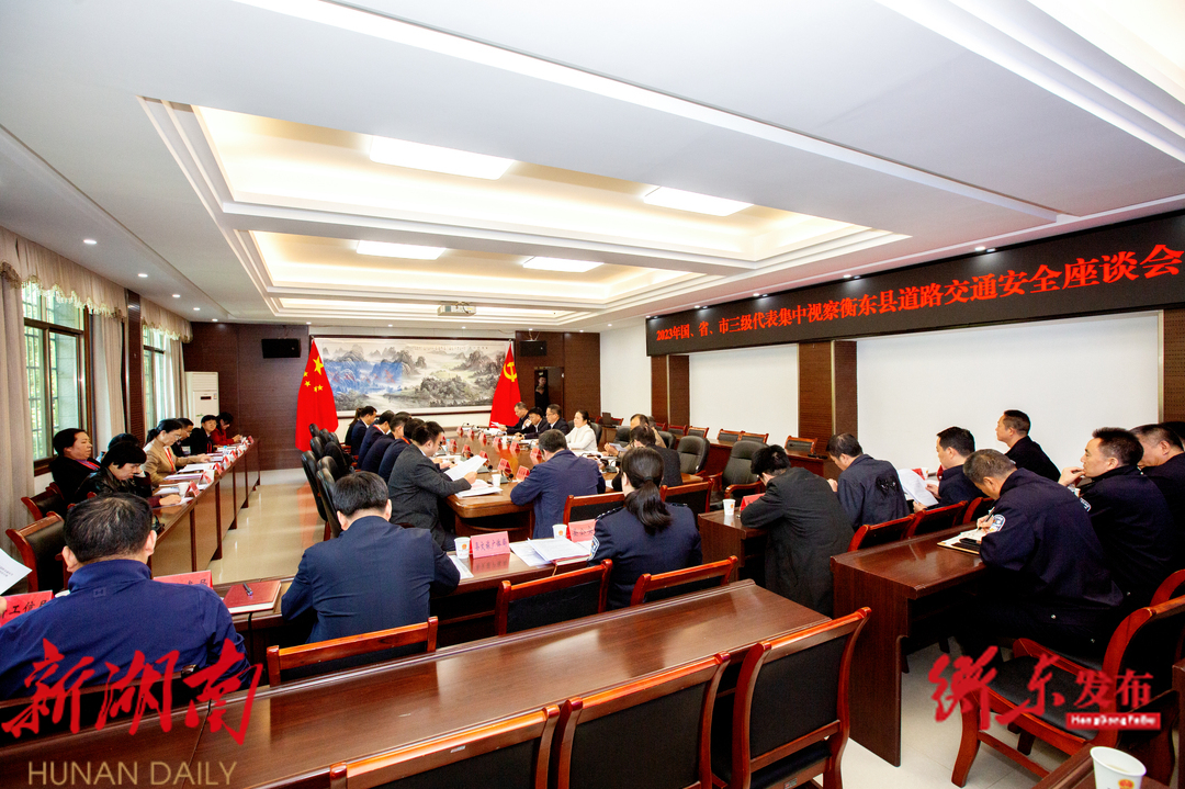 图:2023年国、省、市三级代表集中视察衡东县道路交通安全座谈会现场