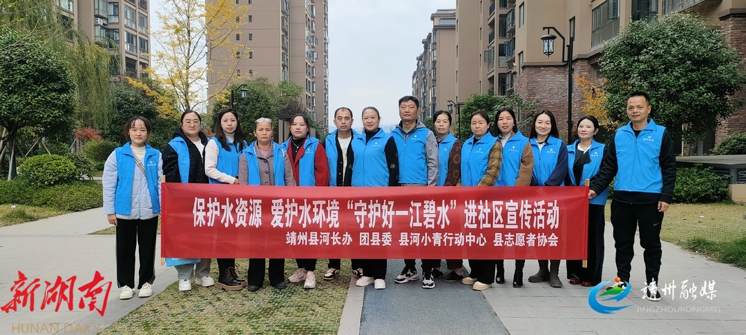 靖州融媒11月23日讯 (记者 龙俊霓 通讯员 李启兰)为倡导科学用水理念、提高居民节水意识、养成良好节水习惯。11月22日,靖州苗族侗族自治县河长办、团县委、河小青行动中心、志愿者协会,联合走进邓家坡社区,开展保护水资源、爱护水环境“守护好一江碧水”进社区宣传活动。