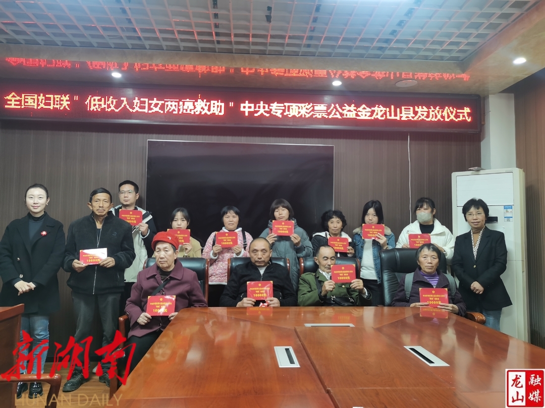 龙山县融媒体中心11月23日讯(通讯员 张丽)11月23日,县妇联举行了全国妇联“低收入妇女两癌救助”中央专项彩票公益金资金发放仪式,为12名患病低收入妇女发放救助金,每人1万元,共发放12万元。