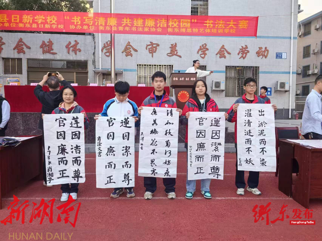 衡东融媒11月23日讯(融媒体记者 陈康 周雨成(实习))为深入推进清廉校园建设,营造廉洁、文明、和谐的校园氛围,积极培育和践行“以清为荣,以莲为美”的价值观,11月22日,县日新学校举行“书写清廉共建廉洁校园”书法大赛。