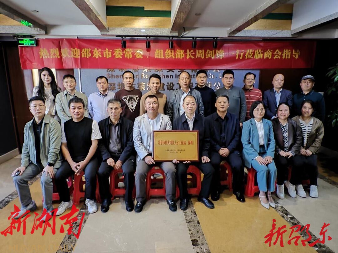 新邵东客户端11月23日讯(通讯员 刘旭东 易若男 ) 11月20日—11月21日,邵东市委常委、组织部长周剑锋赴广东省邵东商会为“邵东市驻大湾区人才工作站”授牌,并分别在深圳、佛山及惠州设立分站和授牌,这标志着邵东市人才工作迈上新台阶。