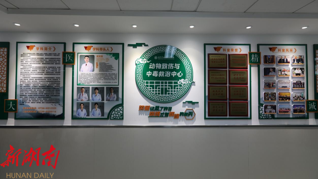 动物致伤与中毒救治中心设有动物致伤与中毒门诊、职业病中毒门诊、狂犬病毒暴露预防处置门诊、洗消室、中毒抢救室、中毒ICU、急诊综合病区、疫苗接种室、AEFI处置室、宾文凯名医创新工作室、动物致伤与中毒研究室、南华大学4310临床研究室等,开放床位30余张,已成为具有国内较有影响的临床诊疗中心和研究培训基地。目前有临床医师和科研人员20余人,护理人员30余人。
