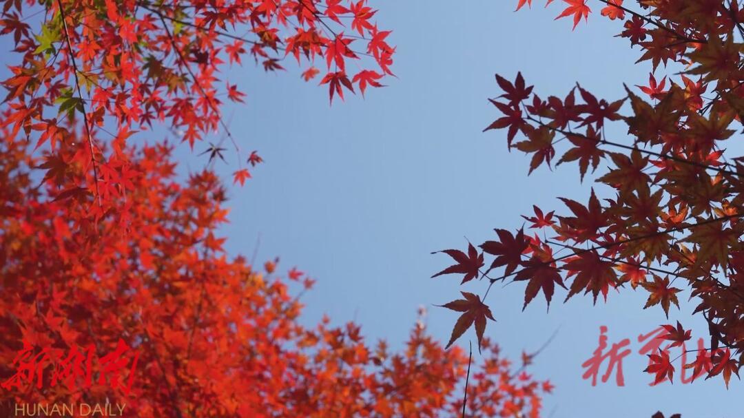 湖南日报•新湖南客户端11月24日讯 (通讯员 盘俊杰 刘振宇 王玉珏 彭嘉玲)又是一年枫红时,霜叶红于二月花。一场寒霜过后,蓝山县“蓝山谷”旅游景区的枫树换上了“红装”,进入最佳观赏期,吸引不少游客前来打卡游玩,享受“醉”美“枫”景。