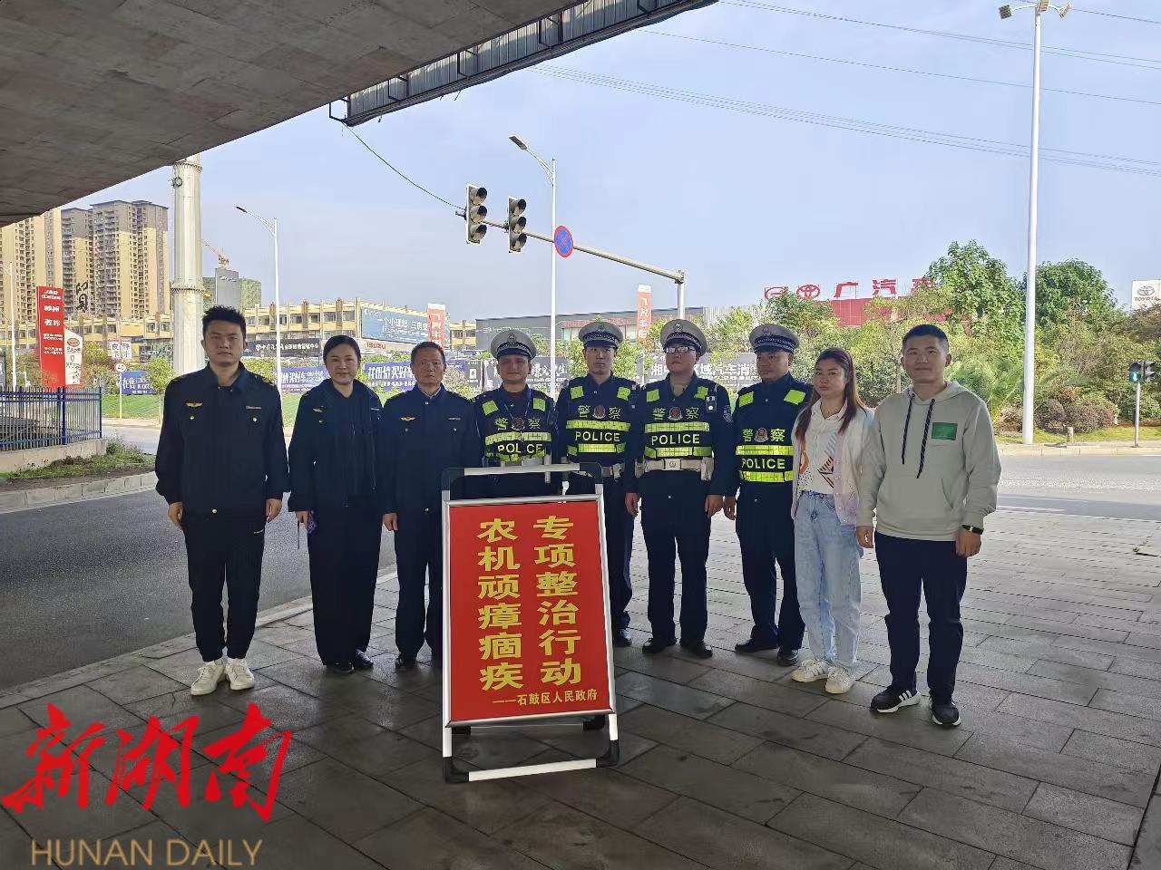 11月24日,石鼓区农业农村局联合区交警大队与市农业农村局执法大队,在石鼓区107国道与二环北路处开展拖拉机交通顽瘴痼疾专项整治行动,全力查处拖拉机各种违法违规行为,预防和减少农机安全事故。