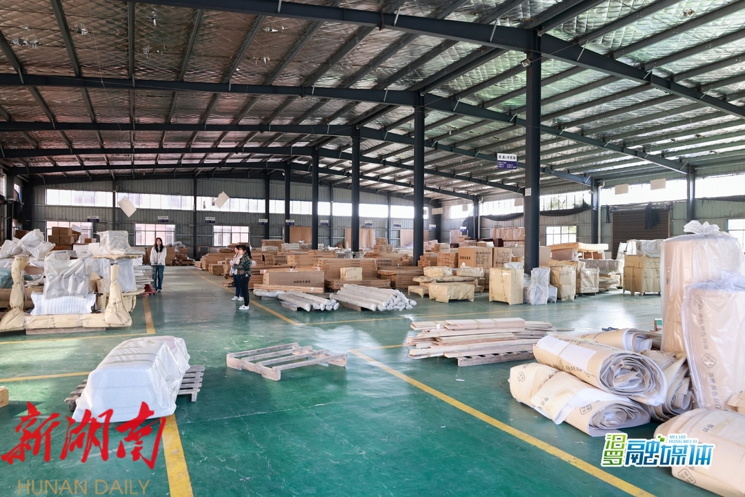 湖南日报·新湖南客户端11月26日讯(记者 夏凡 实习生 吴芯蕊)11月24日,汨罗市大荆镇楚盛家具厂内,当地村民雷孟与搭档默契配合,装卸着一件件成品家具。“在这边主要是装卸货,每天工作8小时,每月收入4000元左右。”能有这样一份兼顾家庭的“家门口”的工作,身为2个孩子妈妈的雷孟很是知足。