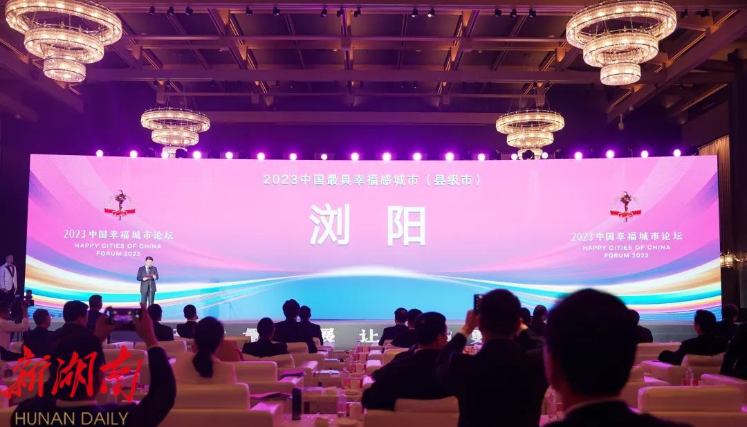 11月24日,从成都传来喜讯:在2023中国幸福城市论坛上,“2023中国最具幸福感城市”调查推选活动揭榜,浏阳市榜上有名。这是浏阳继去年获评“企业家幸福感最强市”荣誉后,获得的又一项极具份量的城市荣誉。
