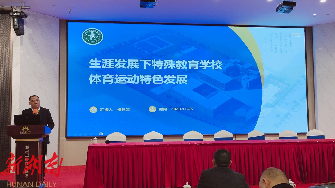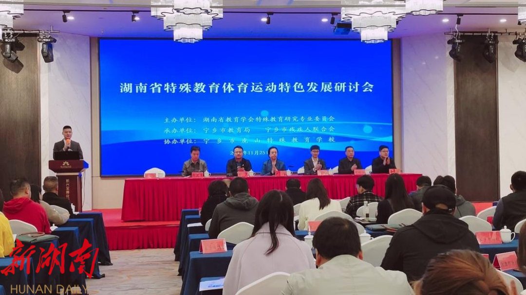 湖南日报·新湖南客户端11月26日讯(通讯员 田婉婷 李艳)11月25日,湖南省特殊教育体育运动特色发展研讨会在宁乡召开。来自全省各市(州)、县特殊教育学校的157名特教体育人来到宁乡市进行经验交流学习。省特殊教育研究专业委员会理事长王磊、省特殊教育专业委员会副理事长陈杰、省特殊教育研究专业委员会副理事长匡明生、省特殊教育研究专业委员会秘书长董艳莎、中国适应体育知名专家卢雁、宁乡市政府办副主任蒋建华、宁乡市教育局副局长易富饶出席研讨会。