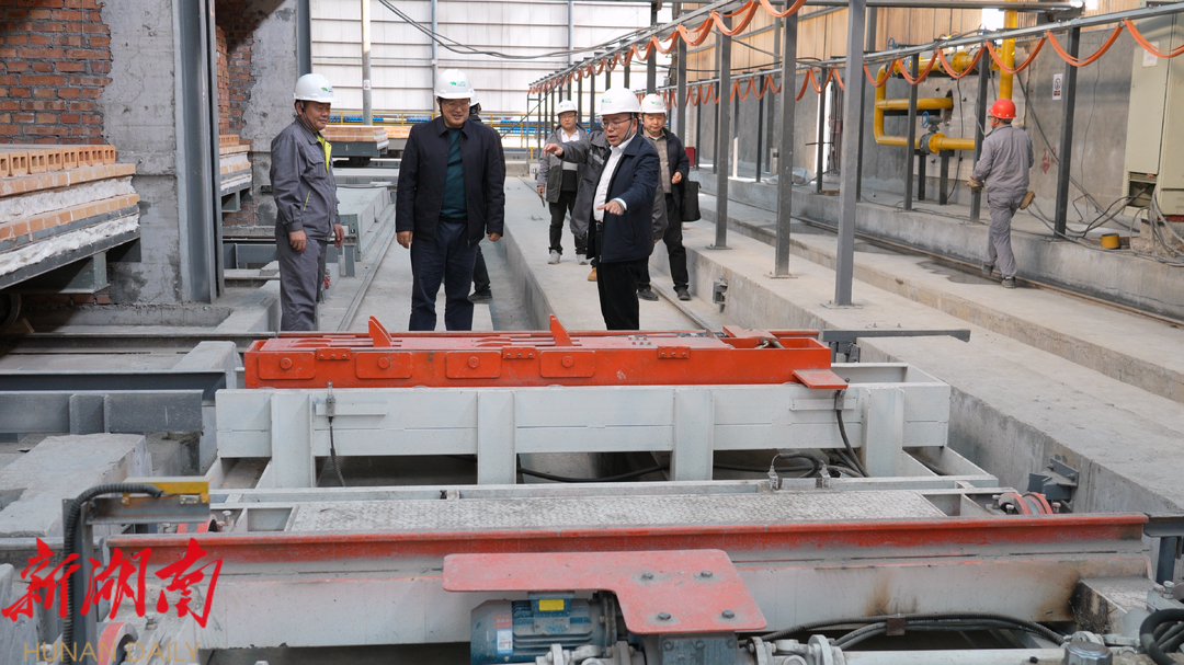 在湖南汉瑞新材料科技有限责任公司,邓晓东察看了先进储能材料生产线、烟气处理系统,听取隧道窑单体设备点火试车情况汇报。座谈会上,公司有关负责人汇报了施工项目的进展情况和存在的困难。邓晓东首先对公司列出的清单事项给予一一答复,并对项目这一历史性的时刻表示祝贺,是大家不断努力和创新的结果。他强调,乡镇和职能部门要始终把服务放在首位,及时提供支持和解决困难,协同推进项目建设,共创美好的未来。
