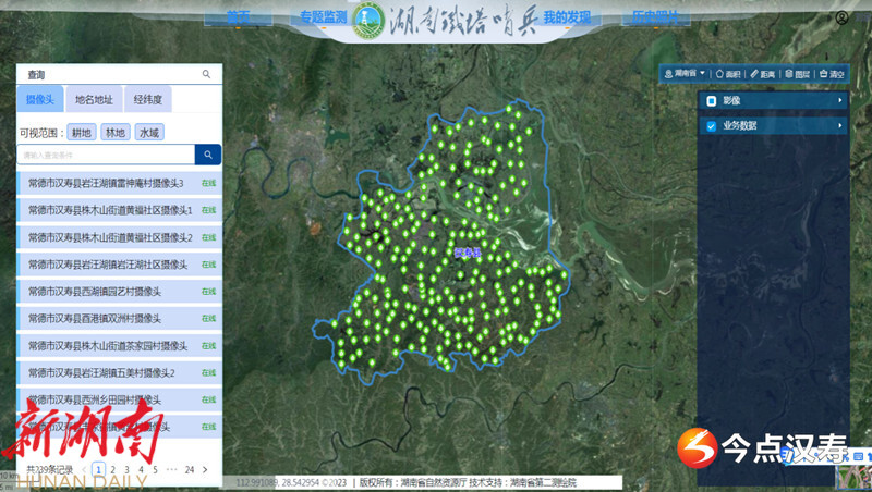 自然资源铁塔视频监测项目是湖南省自然资源厅2022年以来大力推进的项目,为构建“空天地网”一体化自然资源监测体系构建提供了重要的信息数据。依托该系统已构建了“看得清、快识别、能预警、全处理”的业务化运行技术体系,应用于土地矿产违法、耕地“非农化”“非粮化”、森林防火、河湖“四乱”等问题的发现与核实、粮食种植情况、重大工程进展相关管理信息提取等方面,取得了较好成效。今年初,汉寿县已建成并投入使用的铁塔监测站点228个,10月份,按省自然资源厅要求继续重新核实新增站点15个,基本实现了全县“山水林田湖草沙”等重要自然资源铁塔视频监测全覆盖。同时,全县各相关部门和乡镇(街道)累计开通了“铁塔哨兵”账号29个,共享了原始数据。目前,汉寿县利用“铁塔哨兵”精准识别、快速反馈的特点,向县、乡、村各级资源管理人员推送铁塔视频告警图斑241条,反馈率100%,全面实现了告警图斑识别快、预警快、处置快。