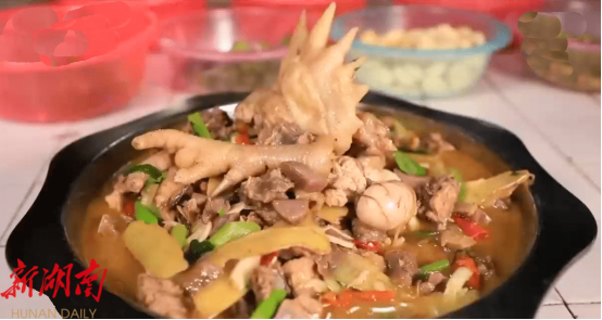 “湘阴渡烧鸡公色彩红亮,口味鲜辣浓郁,回味无穷。”从长沙远道慕名而来的李先生夹着一块鸡肉往嘴里送,津津有味地嚼着说。