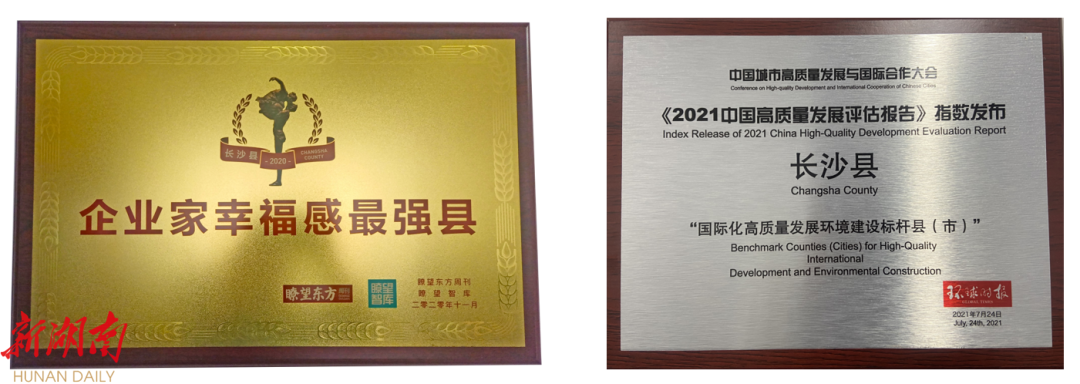 获评“国家级生态县”、国家“生态文明建设示范区”、国家“绿水青山就是金山银山”实践创新基地、“中国人居环境范例奖”“全国十佳两型中小城市”等一系列国字号招牌,不断彰显着长沙县的绿色发展水平。