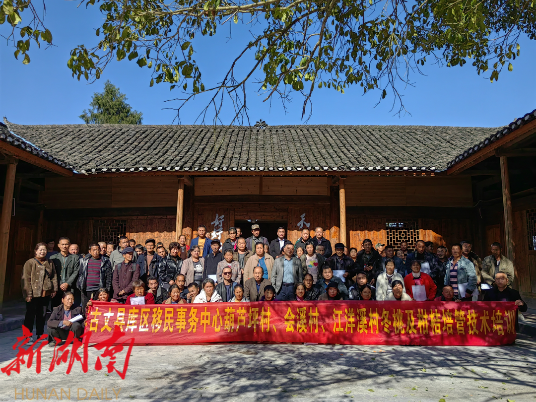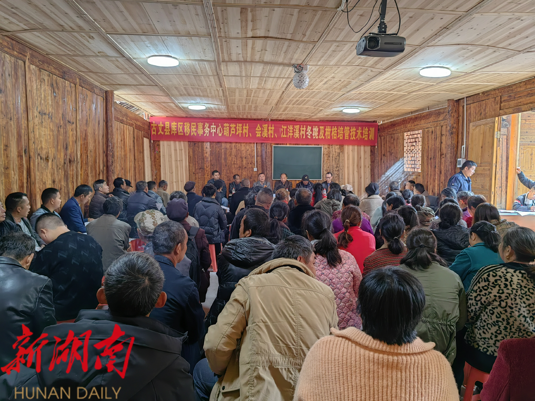 新湖南客户端11月29日讯(通讯员 张艳君)为进一步提高移民冬桃及柑桔种植技术,促进产业发展,帮助移民增收致富,助力乡村振兴,11月27日,湘西土家族苗族自治州古丈县库区移民事务中心在高峰镇葫芦坪村组织举办冬桃及柑桔培管技术培训会。本次培训会由古丈县库区移民事务中心相关负责人主持,县委组织部人才办、高峰镇人民政府、华夏航空公司等相关工作负责人和技术员受邀参加并进行授课及现场技术指导,葫芦坪村、会溪村和江洋村三个重点移民村100多人踊跃报名参加此次培训。