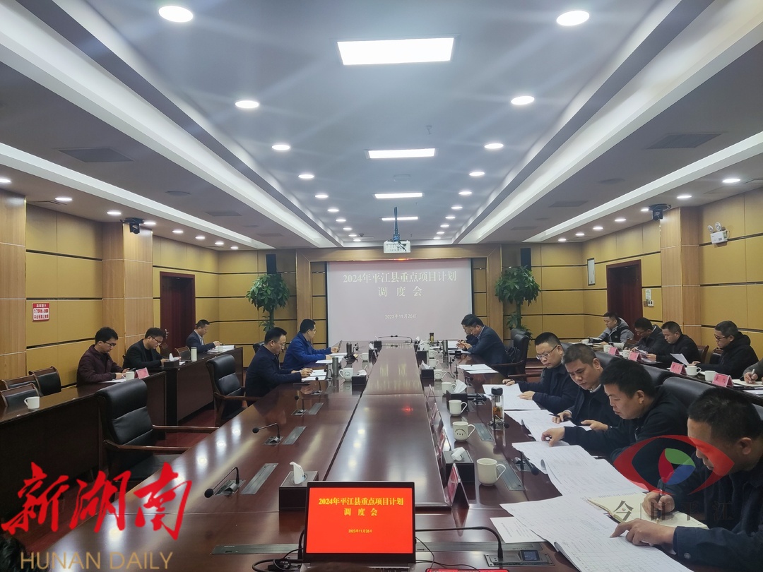 11 月 26 日,县委副书记、县长彭方建主持召开2024年平江县重点项目计划调度会,听取2024年重点项目计划储备和申报推进情况,进一步分析形势、研究对策,全面提升项目谋划工作实效。副县长夏海参加。