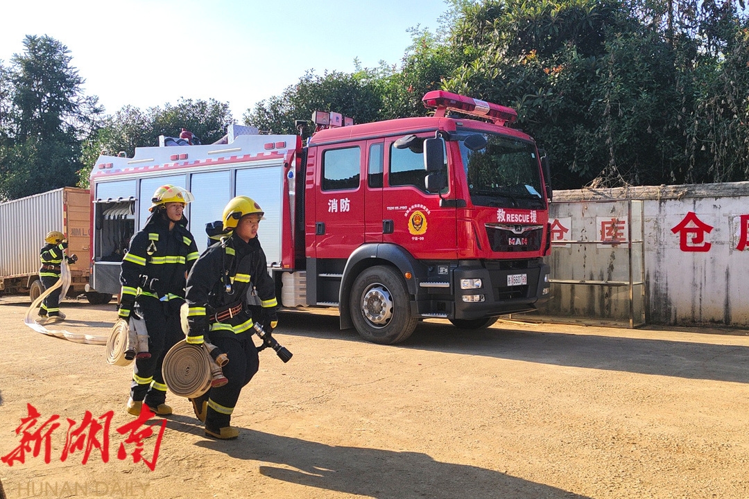 湖南日报 新湖南客户端11月29日讯(通讯员 王仕军 郭冬祥 肖益婷) 为进一步加强易燃易爆场所消防安全工作,防范和遏制较大以上火灾事故发生,为辖区营商环境提供安全保障,11月28日,宁远县消防救援大队深入辖区东方金色烟花爆竹销售有限公司开展消防熟悉演练,切实提升灭火救援硬实力。