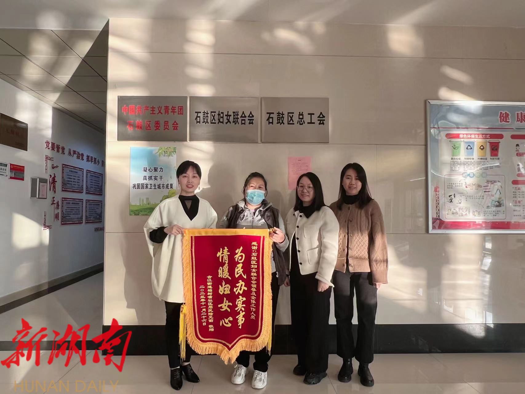 “特别感谢党的好政策,感谢妇联组织对我的关爱,让我树立了战胜病魔的信心和希望,也缓解了家庭经济负担。”11月27日,来自合江街道柏树嘴社区的陆女士在街道妇联主席的陪同下,给区妇联送来的一面印有“为民办实事 情暖妇女心”的锦旗,以此表达自己的感激之情。
