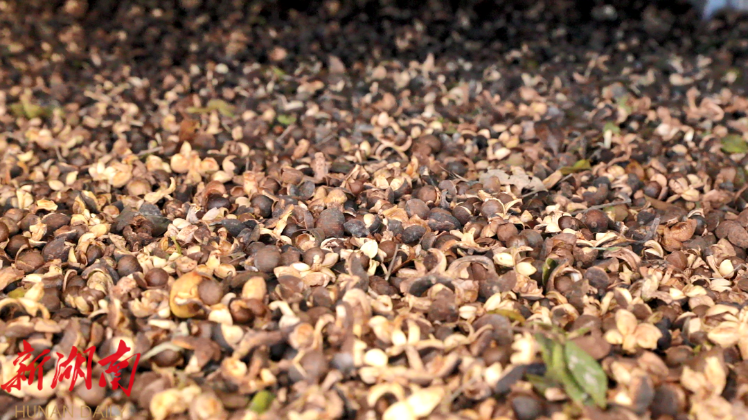 源和公司烤房负责人刘光荣告诉记者,一方面是因为烘干可以让茶果进一步成熟,出油更高,油的口感更好。另一方面再次熟化后的茶果裂开,更容易剥开,也能保持茶籽的完整度。