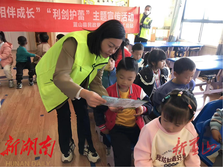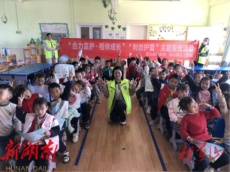 湖南日报•新湖南客户端11月29日讯 (通讯员 吕焱辉)11月28日上午,蓝山县社工总站在民政局的指导下来到兴夏幼儿园开展“合力监护 相伴成长”暨“利剑护蕾”宣传活动。