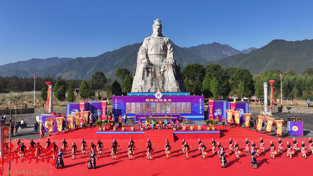 新江永客户端讯(记者 吴雨晴 唐宇 )11月 28 日,江永县2023年瑶族盘王节祭祀活动 , 在瑶族古都千家峒 盘王广场 隆重举行。国家民族事务委员会原一级巡视员沈林,国家民族事务委员会政策法规司原司长、巡视员黄忠彩,国家民族事务委员会理论政策研究室原副主任、巡视员李红杰,湖南省民族宗教事务委员会原副书记、副主任、一级巡视员赵仁秀,市委统战部副部长、市民宗局局长周建志出席。 江永县委书记唐德荣发表致辞,县委副书记、县长何德波 宣读祭文,县委副书记、统战部长李林主持活动。县领导:廖树清、谭美池、 杨敏、 廖小红、唐琼艳、钱建洪、高厚德、李晓波等,以及 来自湖南、湖北、广西、广东、贵州等省、自治区、院校的 领导、瑶文化专家、学者参加活动。