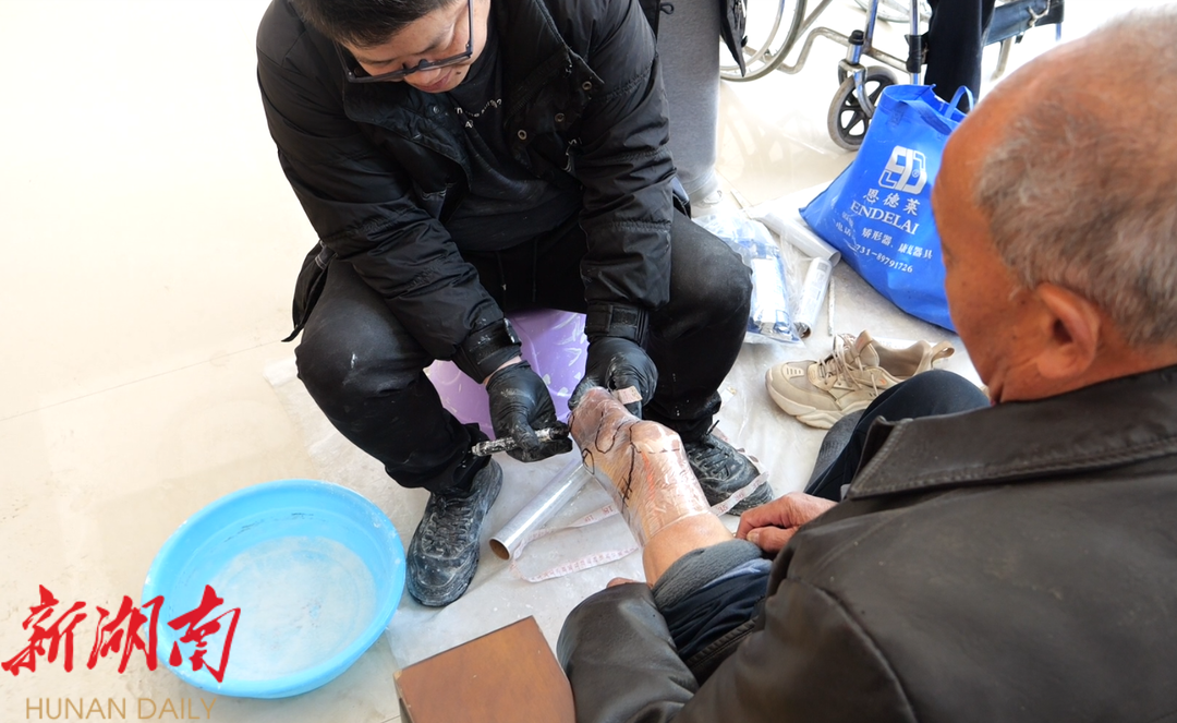 湖南日报·新湖南客户端11月29日讯(记者 肖君)“这个旧的假肢你戴多久了?”11月28日,县残联为9名残疾人免费适配假肢,工作人员认真核对残疾人登记的信息资料,详细了解他们的身体情况,认真核对残疾人登记的信息资料,随后测量、记录、现场制作石膏模型,制作过程中工作人员耐心向他们和家属讲解假肢的保养和维护等日常知识。