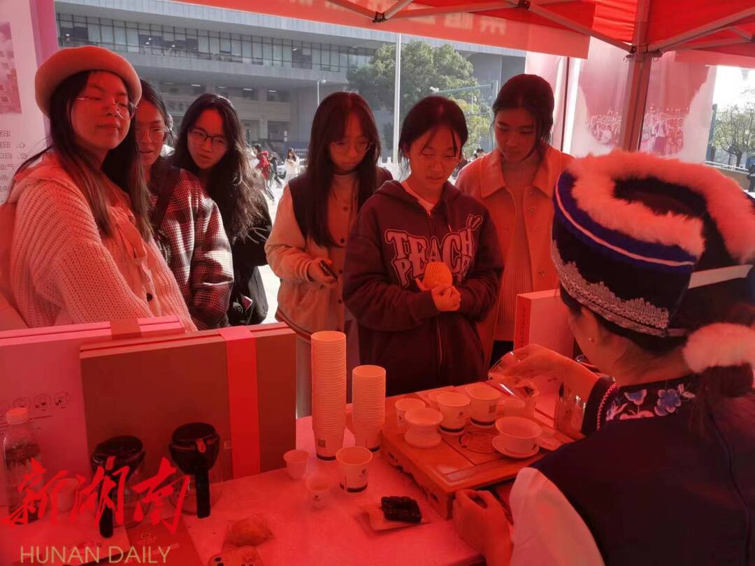 湖南日报·新湖南客户端11月29日讯(记者 彭立梅)“味道清香,口感柔和,耐人寻味。”11月29日,在湖南师范大学湖湘特色文化进校园活动现场,桑植白茶又一次受到关注、热捧。