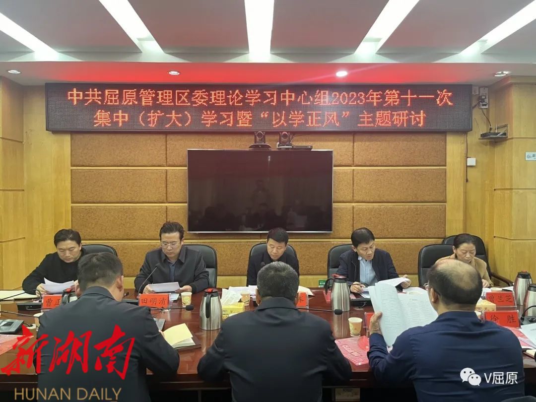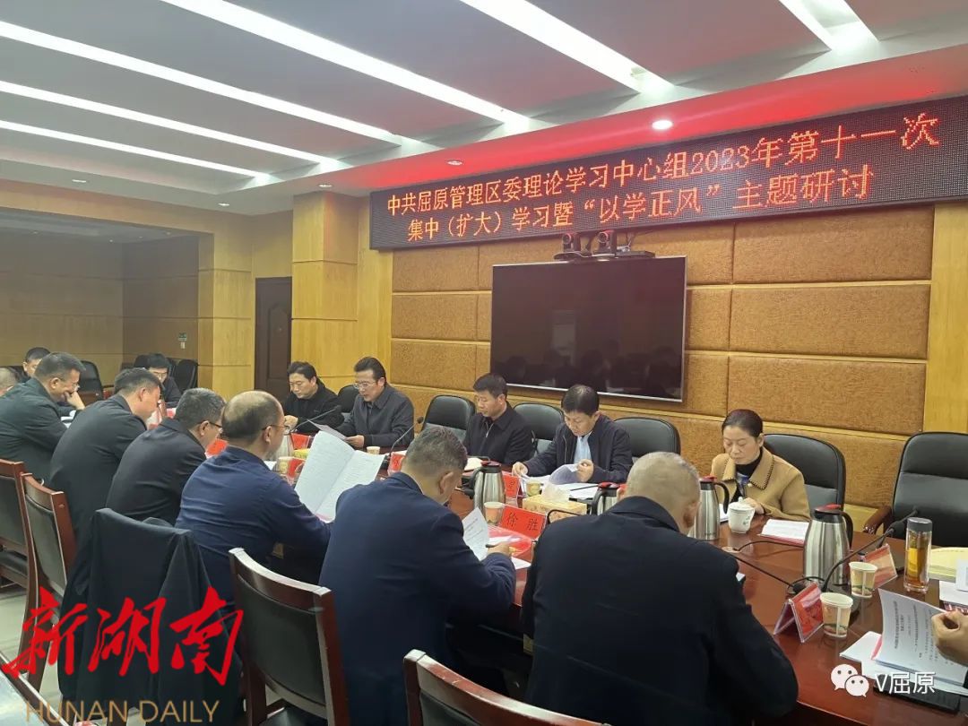 湖南日报·新湖南客户端11月30日讯(通讯员 魏璐璇)11月28日,屈原管理区党委理论学习中心组开展2023年第11次集体学习,围绕“以学正风”这一主题进行专题研讨。