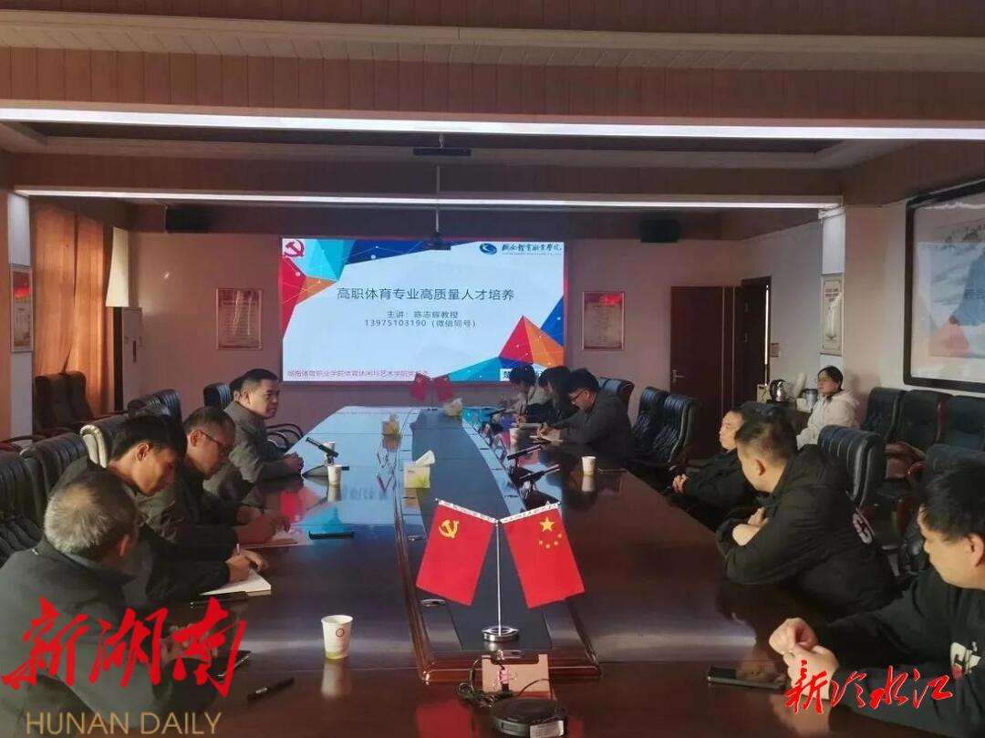 湖南日报·新湖南客户端11月30日讯(通讯员 李文苑)11月27日,娄底幼儿师范高等专科学校在行政楼五楼会议室举行《高职体育教育专业高质量人才培养》学术交流会,本次讲座特邀湖南体育职业学院体育休闲与艺术学院院长、湖南省“楚怡”教学名师、湖南省职业教育高水平专业群(社会体育专业群)负责人、湖南省体育设施建设协会特聘专家陈志辉教授分享经验。