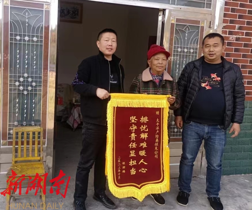 湖南日报 ·新湖南客户端 (通讯员 熊一健)“感谢你们暖心细微的服务,不仅办事效率高,还设身处地为我们老百姓着想,今天我是特意来送锦旗的......。”近日,家住桑植县竹叶坪乡柳浪坪村的陈先生将一面印有“为患者排忧解难 坚守责任显担当”的锦旗送到太平洋财产保险桑植支公司工作人员手中,感谢该公司工作人员和桑植县医保局服务大厅工作人员向敏丹的积极、主动服务。
