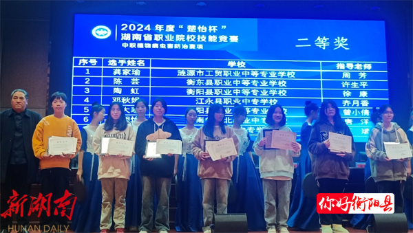 近日,衡阳县职业中专在2024年度“楚怡杯”湖南省职业院校技能大赛中荣获中职植物病虫害防治赛项一等奖、二等奖。