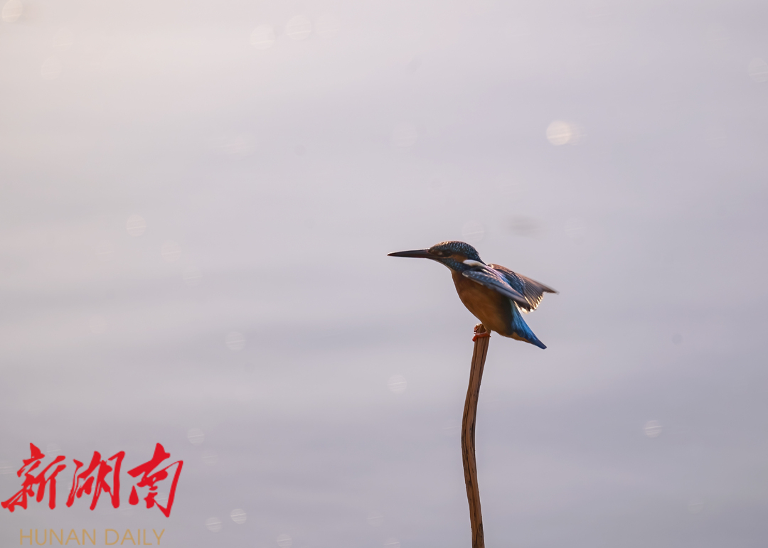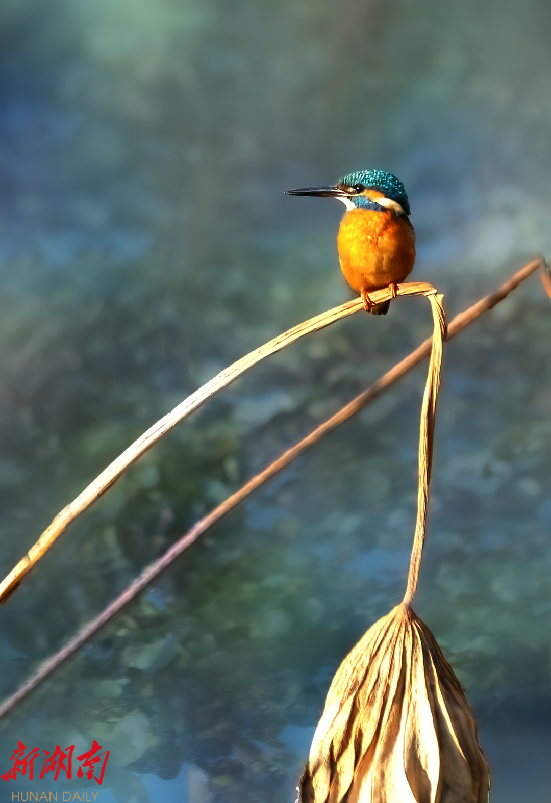 冬荷上,翠鸟停留。摄影爱好者陈可乐摄。