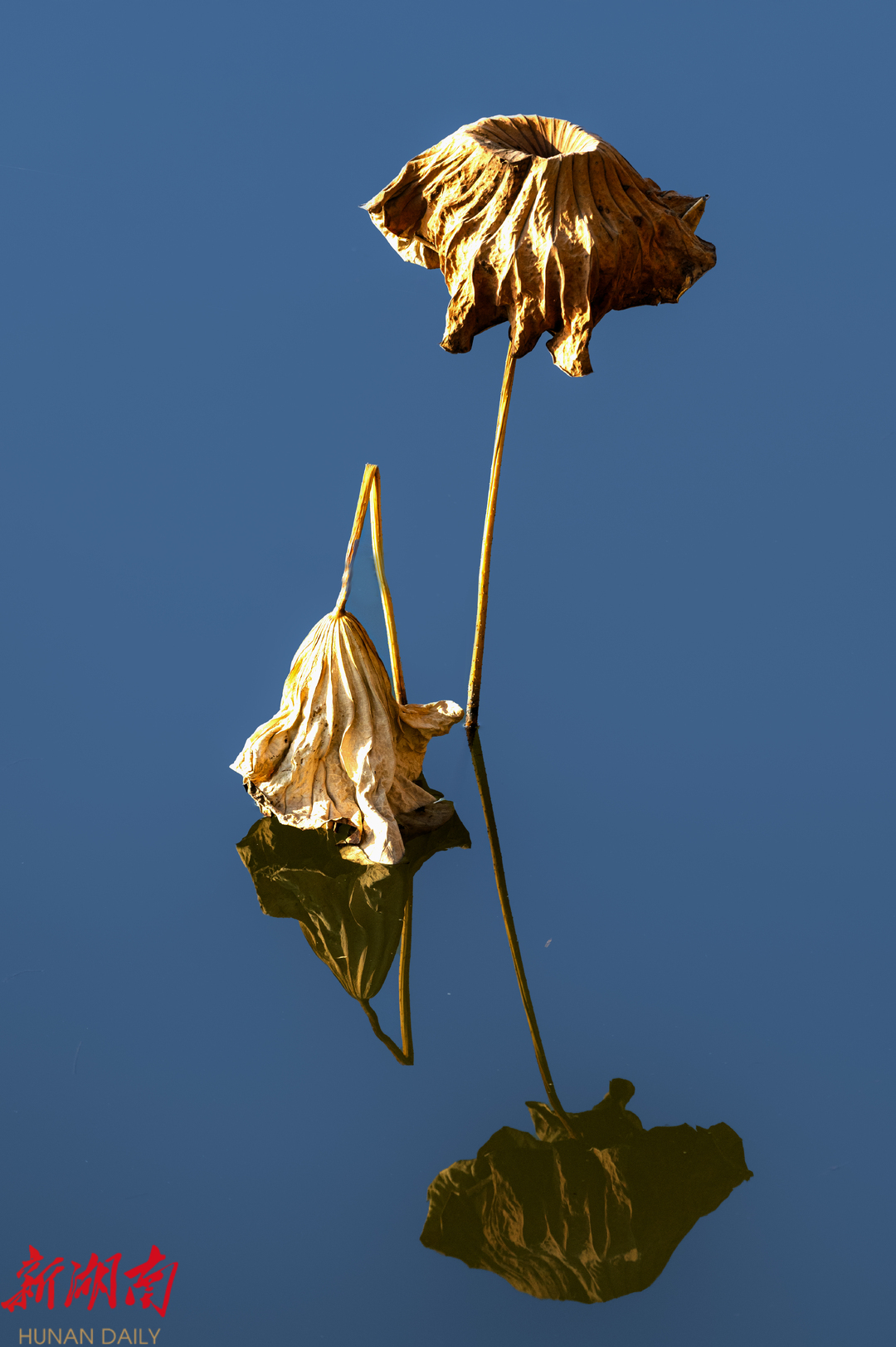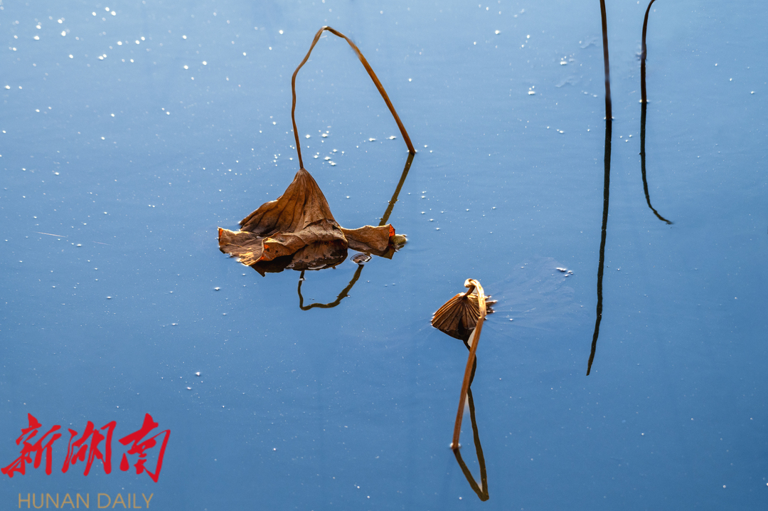 如镜般水面上的冬荷。摄影爱好者陈可乐摄。