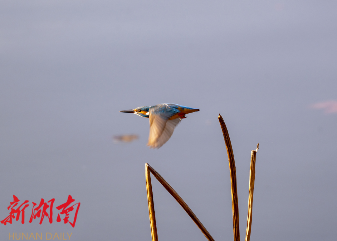 翠鸟振翅,向前飞。摄影爱好者陈敏摄。