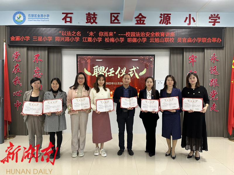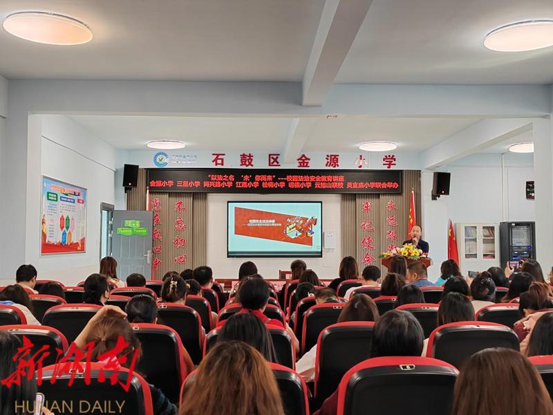 11月29日下午,石鼓区金源小学、三星小学、同兴路小学、江霞小学、松梅小学、明德小学、云旭山联校、灵官庙小学等8所小学,联合开展主题为“以法之名 ‘未’你而来”校园法治安全教育讲座。本次活动特别邀请了湖南雁京律师事务所副主任朱宏杰律师进行主讲,八所学校共130余名教师参加。