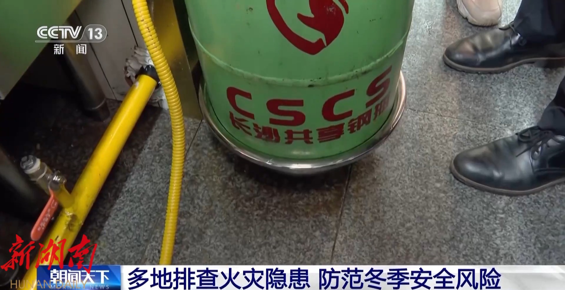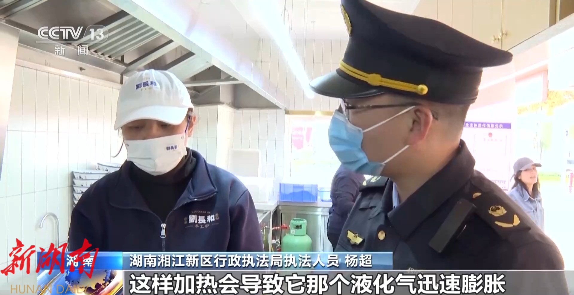 在湖南湘江新区,行政执法人员对辖区内的早餐店开展了突击检查。执法人员走进一家米粉店,发现店员竟然将液化气罐放到热水盆里加热,立即进行了制止。