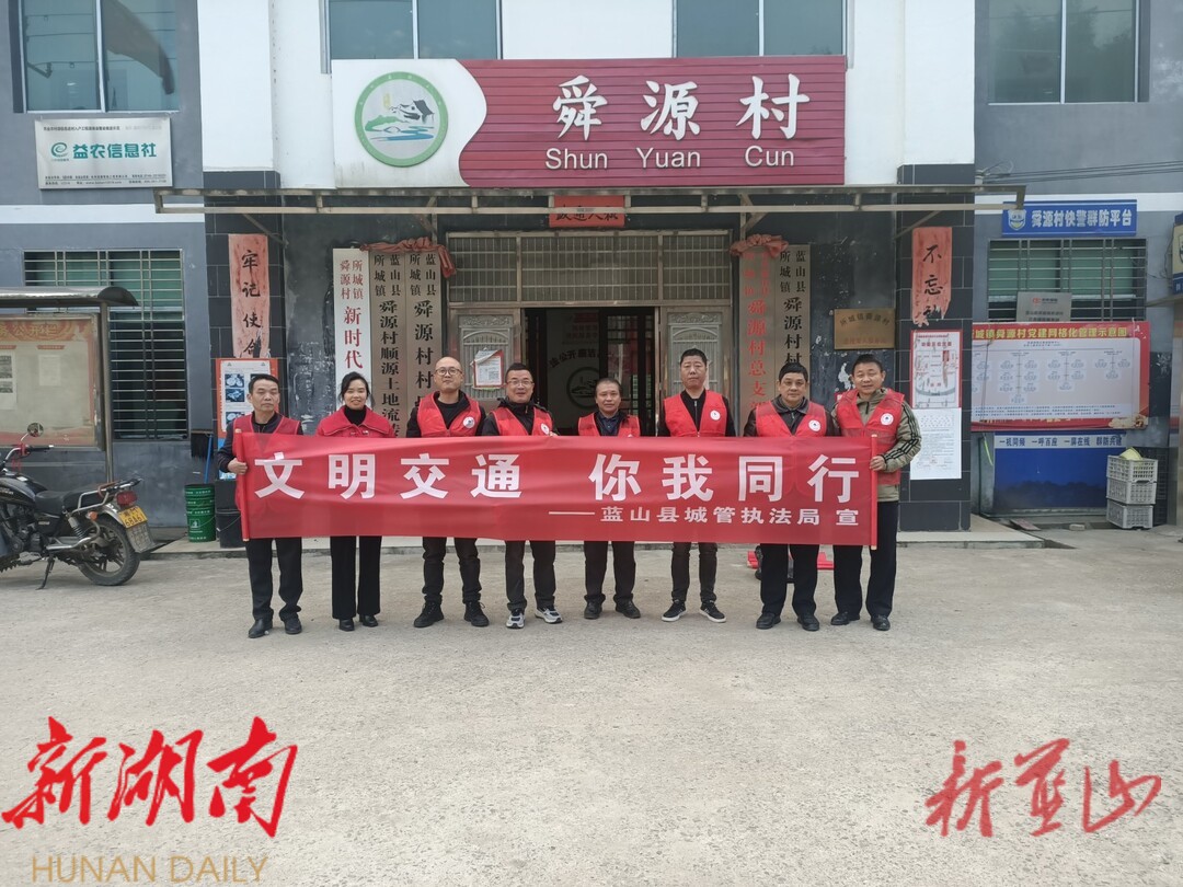 蓝山县城市管理和综合执法局党员志愿者深入所城镇舜源村开展全国交通安全日宣传活动