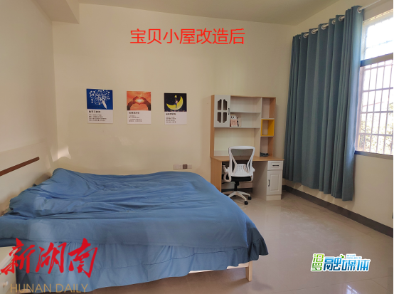 湖南省乐善社会工作发展中心负责人罗乐心怀大爱,心系家乡,投入近2万多元为小黎援建"宝贝小屋"。在援建过程中,罗乐多次来到小黎家,母亲般地和小黎谈心,为他量身定制“宝贝小屋”,全程跟进“小屋”的改造建设。如今,小黎拥有了属于自己温馨舒适的小屋,崭新的书桌、衣柜以及床上用品、学习用品等。生活条件的改善和真切的关怀,让父母离异、性格内向的小黎感受到了前所未有的被重视和温暖,性格也慢慢开朗起来。