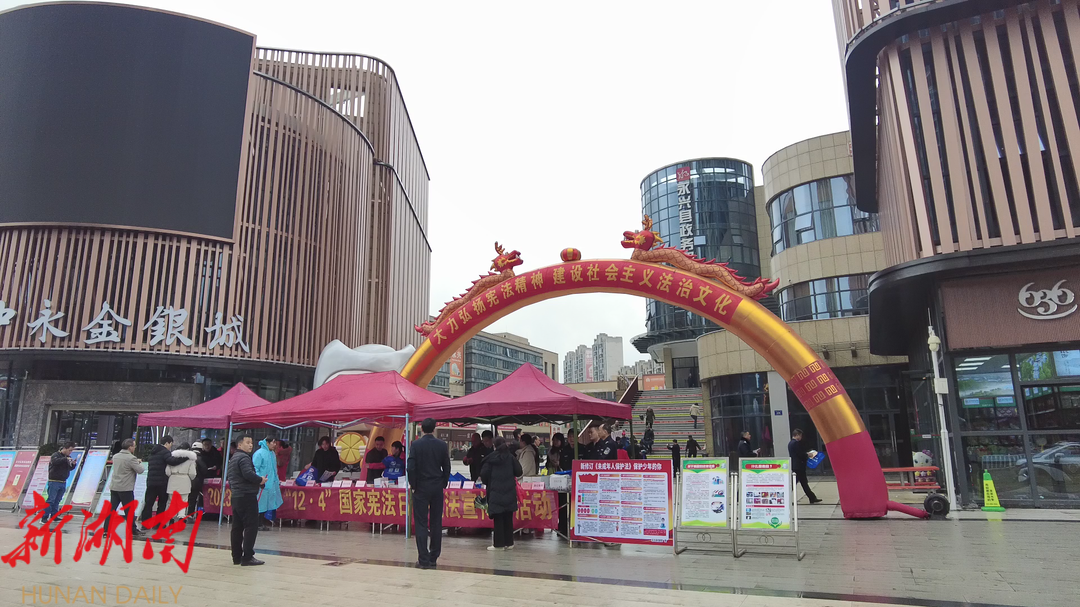 湖南日报·新湖南客户端12月4日讯(记者 郭伊凡 通讯员 李河 罗巧艳 刘春兰)12月4日是第十个国家宪法日。12月4日上午,永兴县在银都文创园开展2023年“12·4”国家宪法日暨宪法宣传周活动。